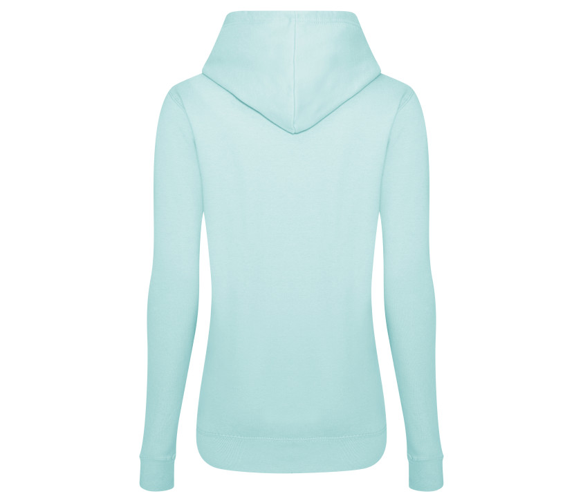Sweat à capuche femme. Coupe féminine. Double coutures. Capuche doublée. Cordons ton sur ton. Poche kangourou. Taille et poignets en bords côte. Intérieur brossé. Étiquette détachable.