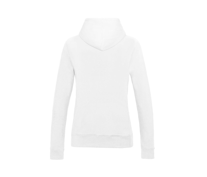 Sweat à capuche femme. Coupe féminine. Double coutures. Capuche doublée. Cordons ton sur ton. Poche kangourou. Taille et poignets en bords côte. Intérieur brossé. Étiquette détachable.
