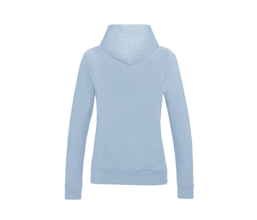 Sweat à capuche femme. Coupe féminine. Double coutures. Capuche doublée. Cordons ton sur ton. Poche kangourou. Taille et poignets en bords côte. Intérieur brossé. Étiquette détachable.