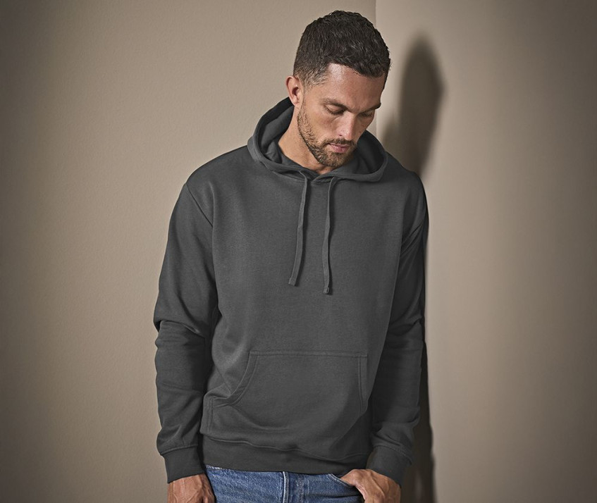 - Mélange de coton bio et de polyester. Capuche et poche kangourou. Manches droites. Intérieur gratté.