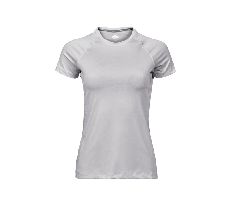Tee-shirt de sport femme - Tee-shirt de sport stretch, doux, respirant et léger. Coupe sportive. Détails réfléchissants. Stock en conversion vers du 95% micro polyester CoolDry recyclé/5% élasthanne.