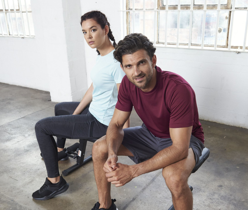 Tee-shirt homme en 100% polyester Neoteric™, matière légère texturée avec propriétés respirantes et facilitant l'évaporation de la transpiration. Coupe sportive. Manches droites. Bande de propreté au cou. Double coutures. Col rond. Étiquette détachable. Matière stretch. Protection UPF 30+UV. Certifié norme EN 13758-1.