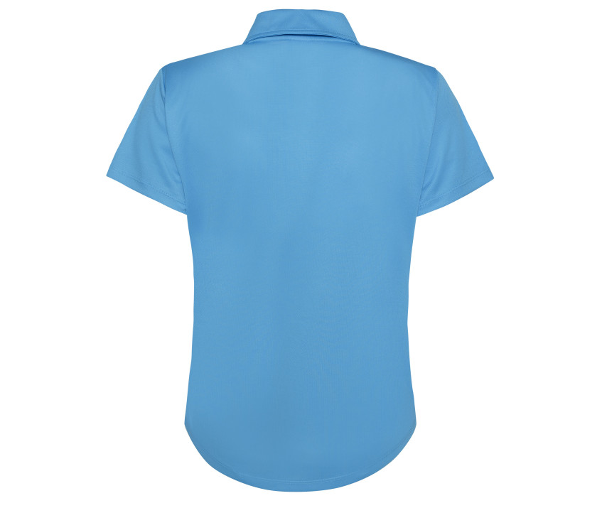 Polo femme en 100% polyester Neoteric™, matière légère texturée avec propriétés respirantes et facilitant l'évaporation de la transpiration. Manches droites. Plaquette 3 boutons ton sur ton. Bande de propreté au col. Double couture. Étiquette détachable. Protection UV UPF 30+.