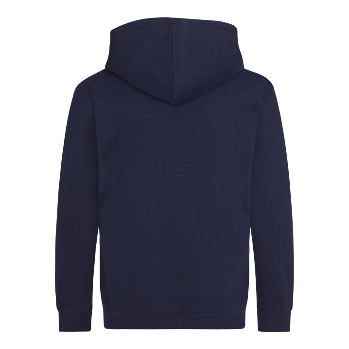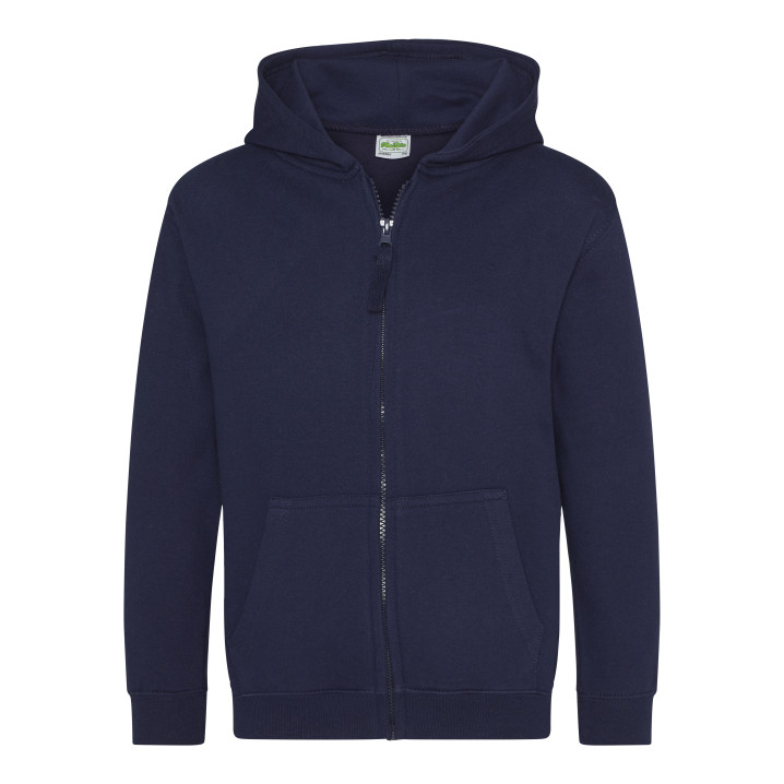 Grand zip. Zip invisible. Capuche doublée. 2 poches frontales. Poignets et ourlet en bords côte. Étiquette détachable. Intérieur brossé.