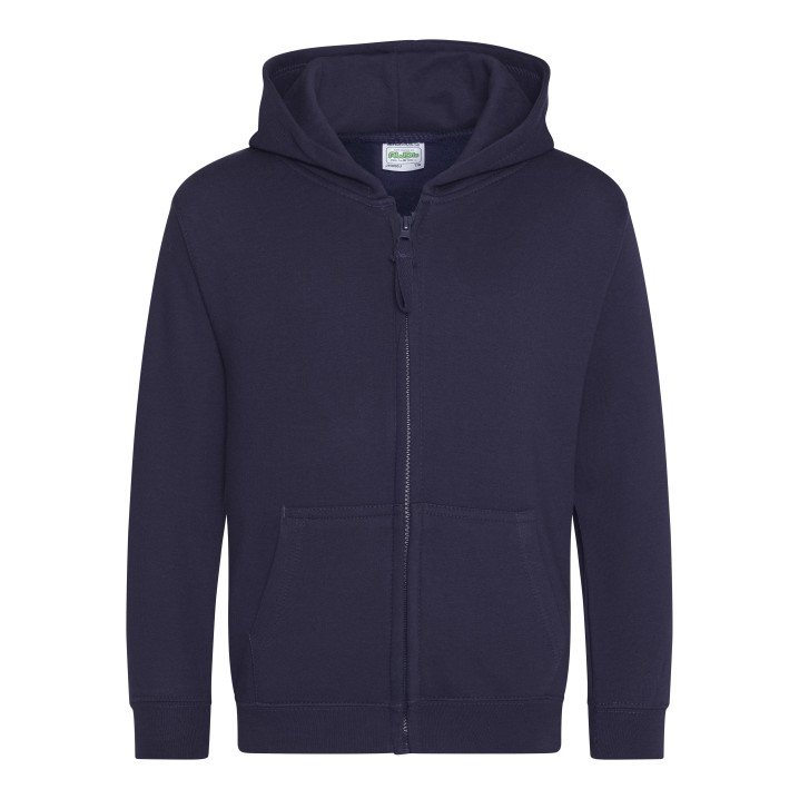 Grand zip. Zip invisible. Capuche doublée. 2 poches frontales. Poignets et ourlet en bords côte. Étiquette détachable. Intérieur brossé.