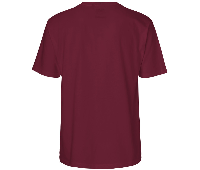 Tee-shirt en coton bio. Maille jersey. Coupe classique. Col rond. Bande de propreté au col. Certifié Fairtrade, EU Ecolabel, SA8000 et Oekotex. Produit avec de l'énergie éolienne.