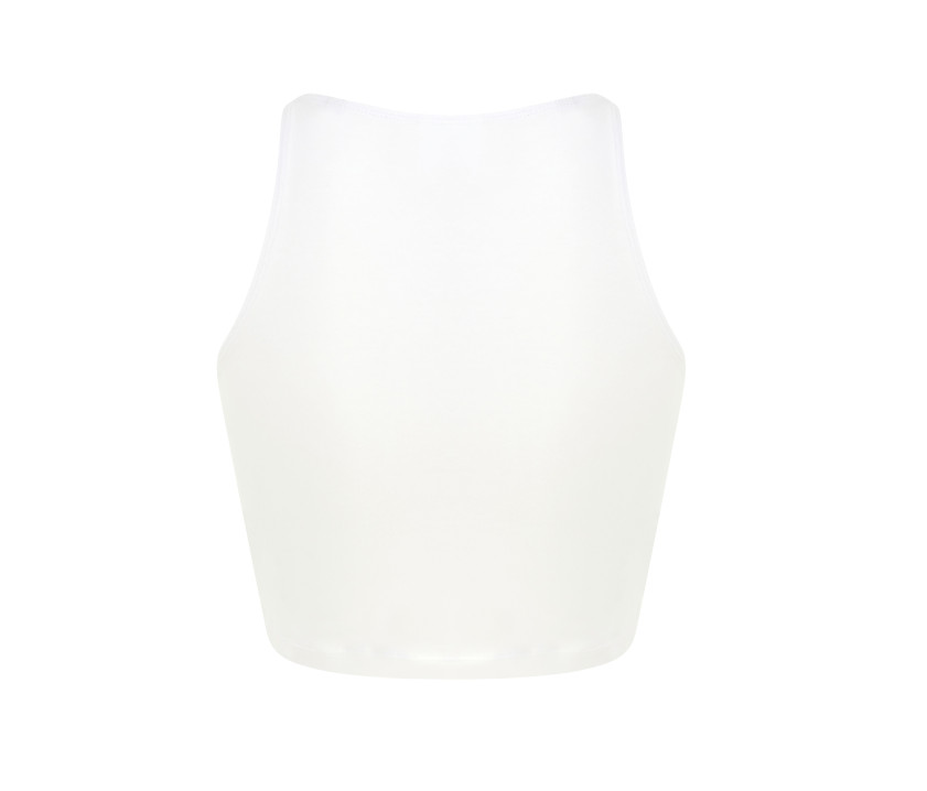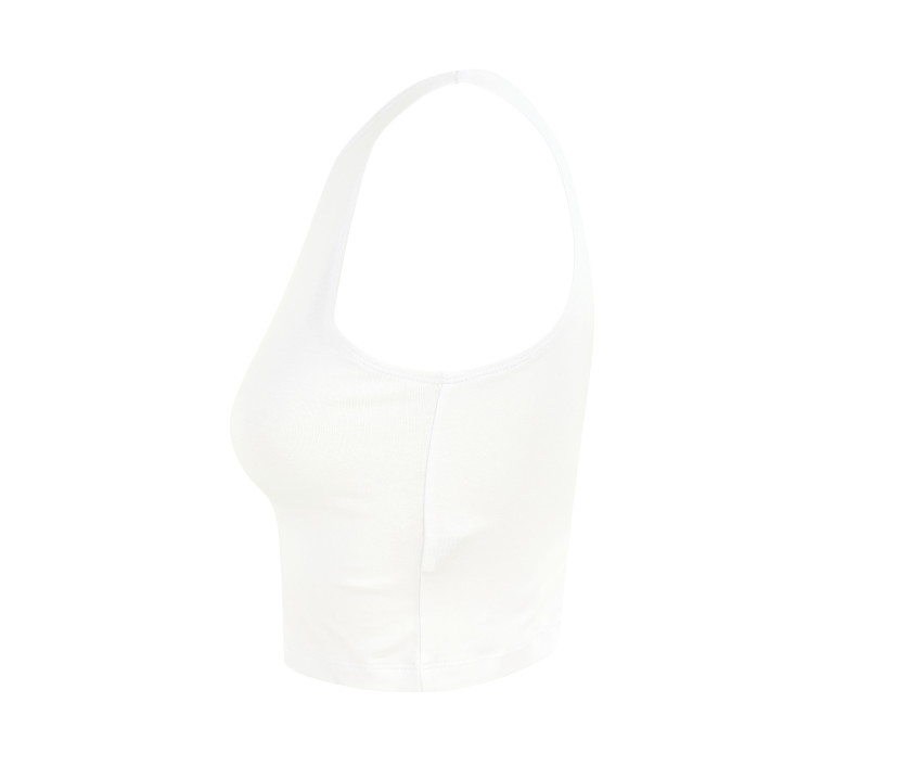 Tee-shirt court. Dos et avant style nageur. Doubles coutures col, emmanchures et taille. Étiquette détachable.