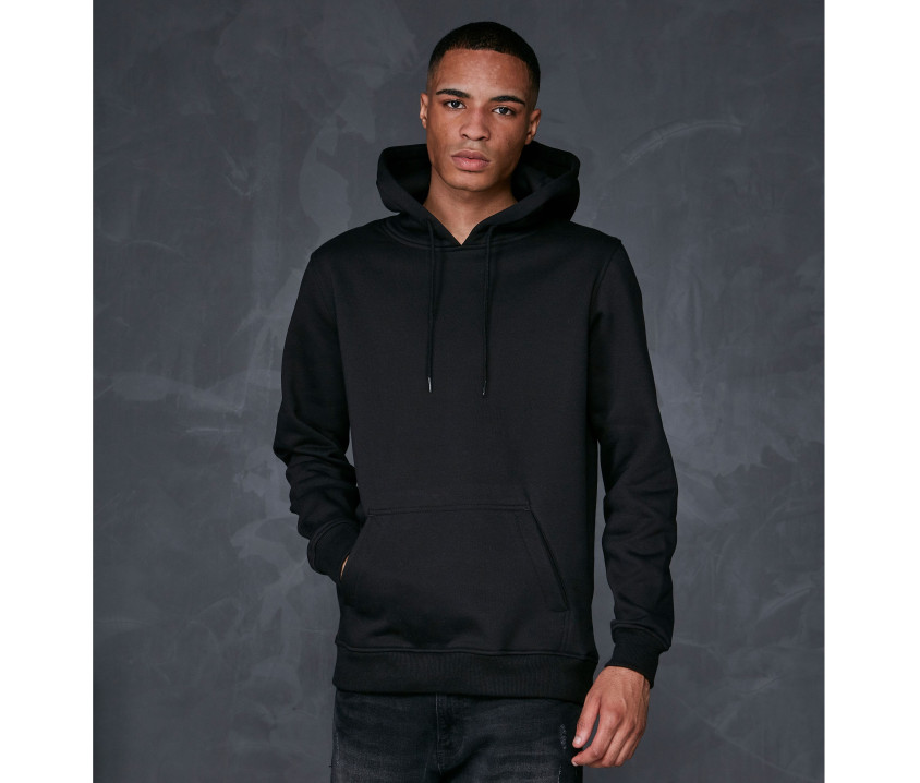 Capuche doublée. Cordon rond ton sur ton. Larges bords côte aux poignets et à la taille. Poche kangourou. Sans étiquette de marque, puce de taille uniquement.