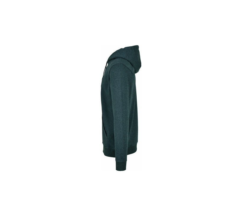 Capuche doublée. Cordon rond ton sur ton. Larges bords côte aux poignets et à la taille. Poche kangourou. Sans étiquette de marque, puce de taille uniquement.