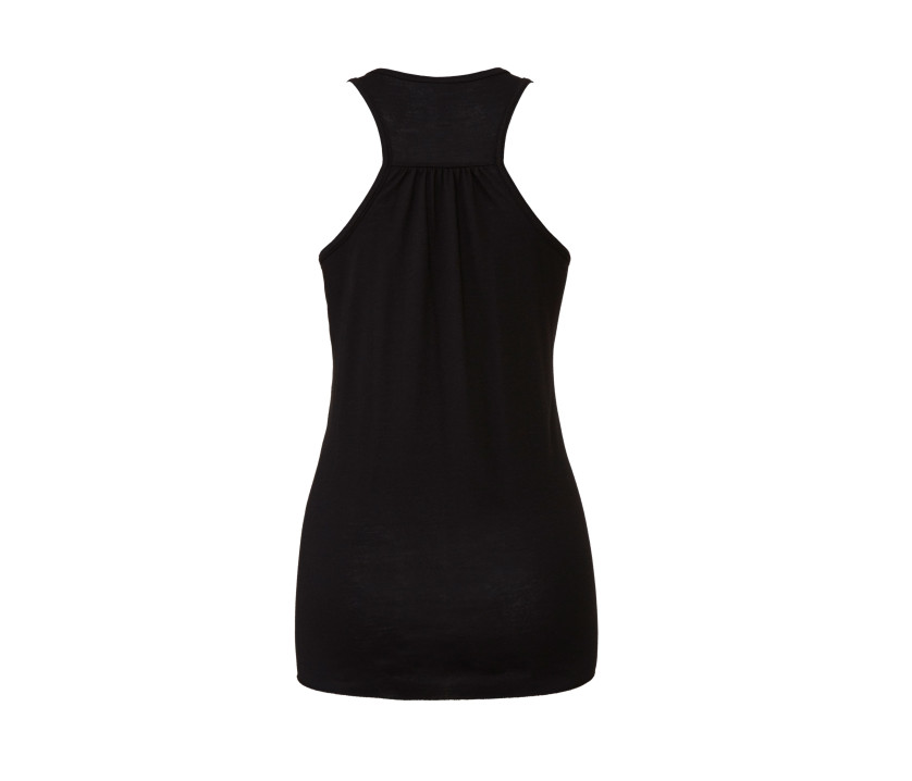 Coutures latérales. Coupe décontractée et flottante. Dos nageur avec coutures transparentes. Étiquette détachable.