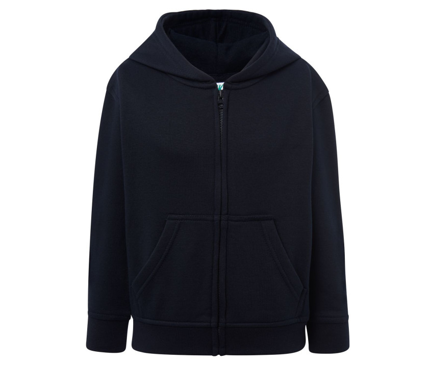 Fermeture grand zip. Poche kangourou. Bords côtes manches et taille en lycra côte 1x1. Stock en conversion : polyester/coton vers coton/polyester recyclé.