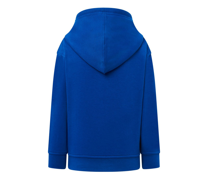 Fermeture grand zip. Poche kangourou. Bords côtes manches et taille en lycra côte 1x1. Stock en conversion : polyester/coton vers coton/polyester recyclé.