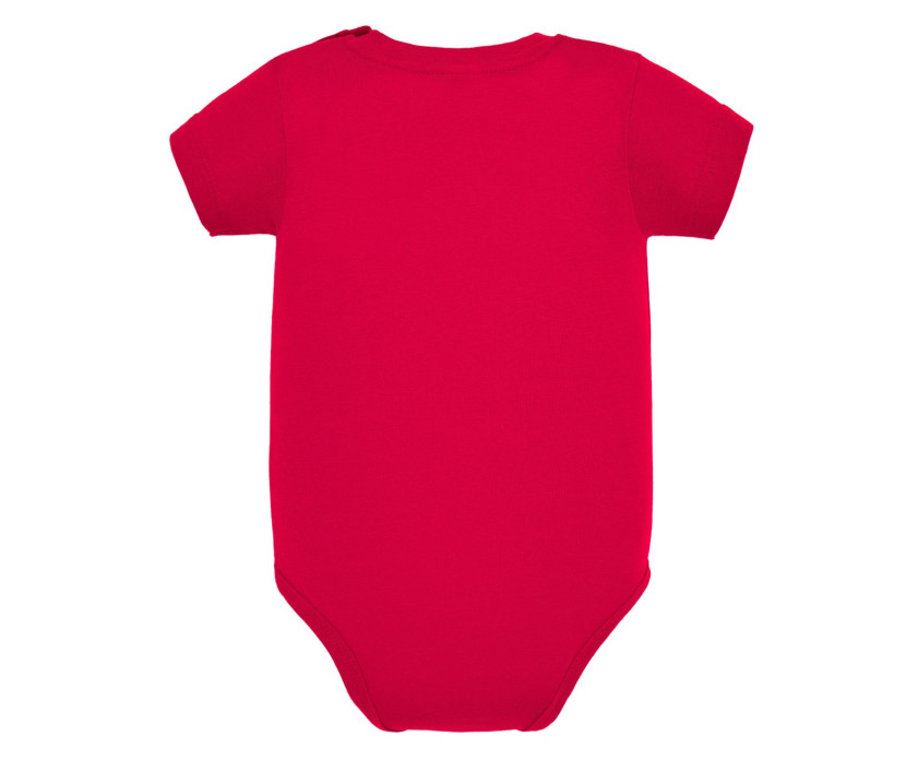 Boutons pression aux épaules et à l'entrejambe. Col en bords côte 1x1. Étiquette détachable.