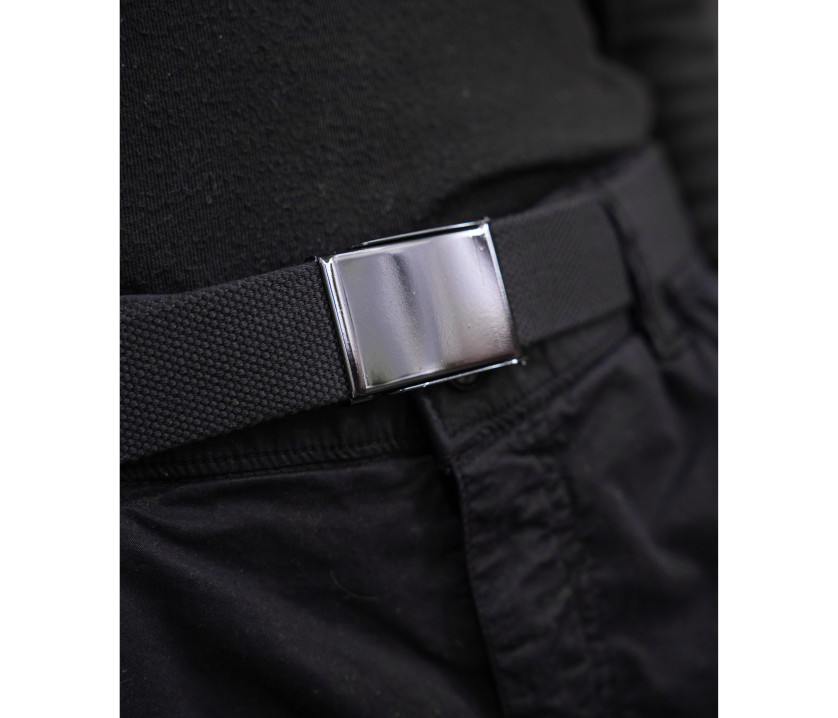 Boucle en métal ton sur ton. Ajustable pour tailles XS à 3XL. Longueur de la ceinture : 125cm. Largeur : 3.8cm. Produit non certifié, n'est pas un produit de sécurité pour la protection personnelle.
