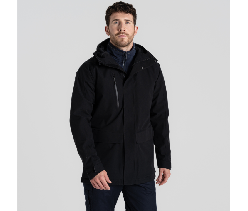 Veste imperméable (10000 mm) et respirante (200000g/24h). Zip sur toute la longueur. 6 poches. Membrane AQUADRY avec finition ECO SHIELD.