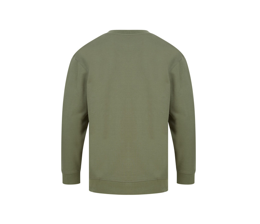 Sweatshirt unisexe à la coupe décontractée. Manches droites. Épaules tombantes. Sweat plus long au dos. Col rond et poignets en bords côte. Surpiqûres ton sur ton. Sans étiquette de marque. Bande de propreté au col.