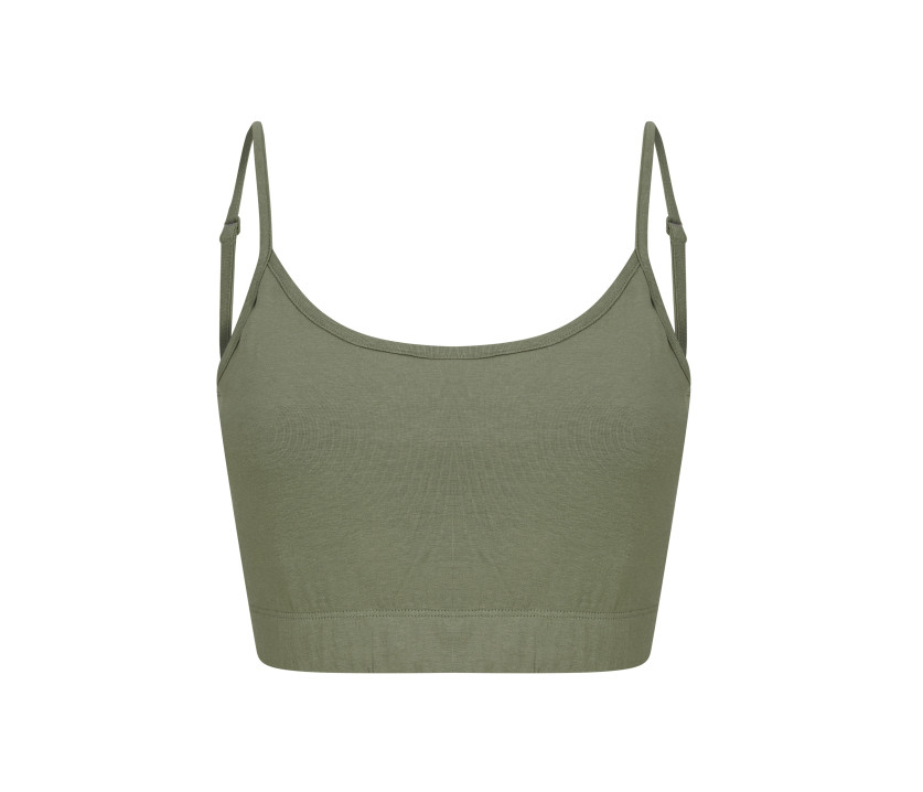 Bretelles spaghetti ajustables. Col et emmanchures arrondis. Avant doublé avec support poitrine invisible. Bande élastiquée en bas du tee-shirt. Sans étiquette de marque.