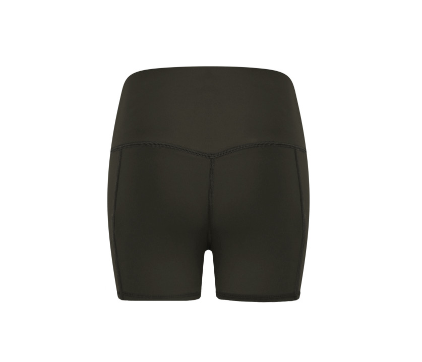 Taille haute. Sans couture sur le devant. Taille élastiquée. Double piqûre à la taille. Tissu stretch. Coutures latérales. Poche sur le côté.
