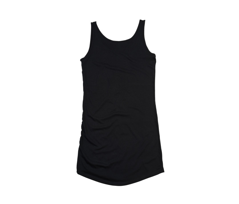 Coupe slim. Longueur : au-dessus des genoux. Bas de robe arrondi. Bretelles larges. Col évasé. Biais fins au cou et aux emmanchures. Étiquette détachable.