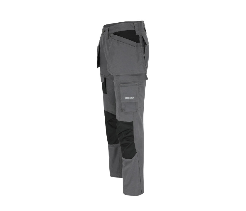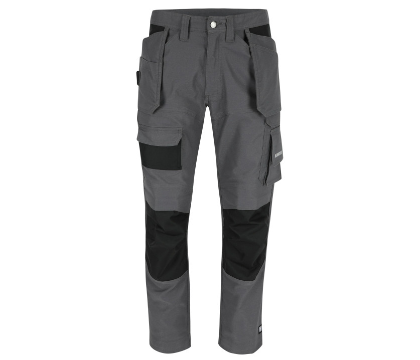 Multipoches. Extensible dans les 2 sens. Technologie Coolmax®. Poches à clous fixes avec renfort en Cordura®. 2 poches latérales. 1 poche téléphone. 1 poches sur la cuisse. 1 poche mètre. Poches pour genouillères. 2 poches arrière. Ourlet à rallonge. Certifié EN ISO 13688 et EN ISO 14404.