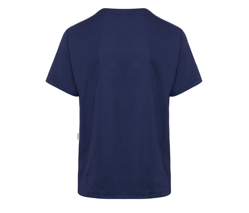 Col V. Convient notamment aux secteurs de la santé et de la beauté. Lavable à 95°. Coupe droite. 2 poches sur les côtés et 1 poche cachée côté droit. Poche poitrine.