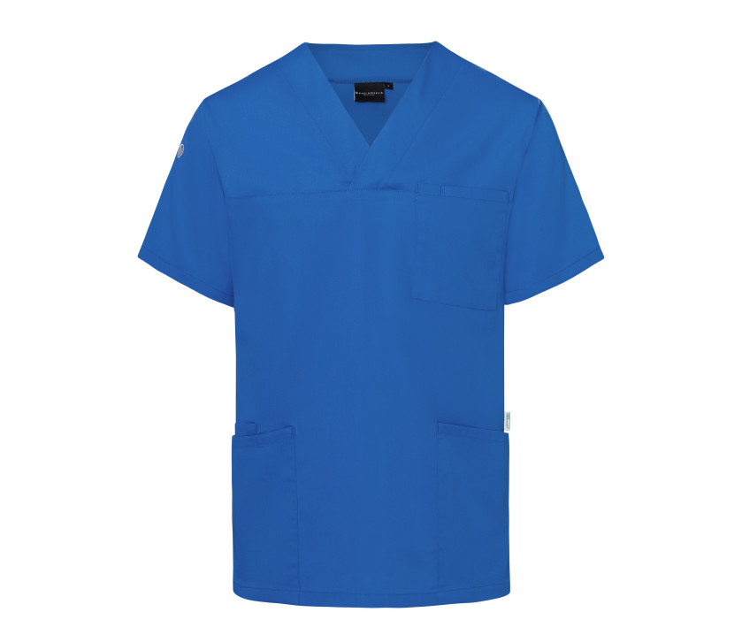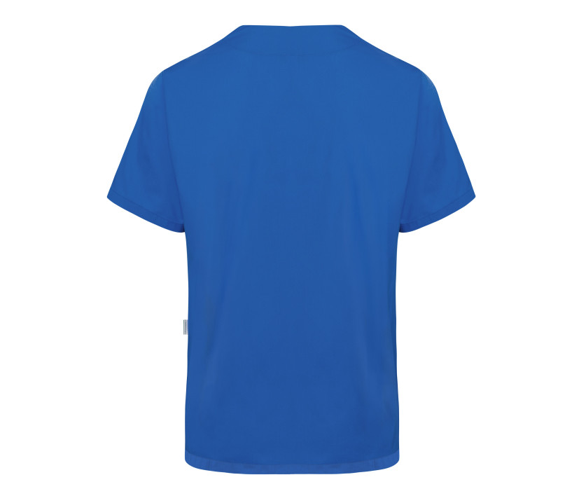 Col V. Convient notamment aux secteurs de la santé et de la beauté. Lavable à 95°. Coupe droite. 2 poches sur les côtés et 1 poche cachée côté droit. Poche poitrine.