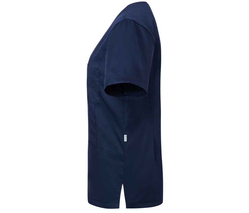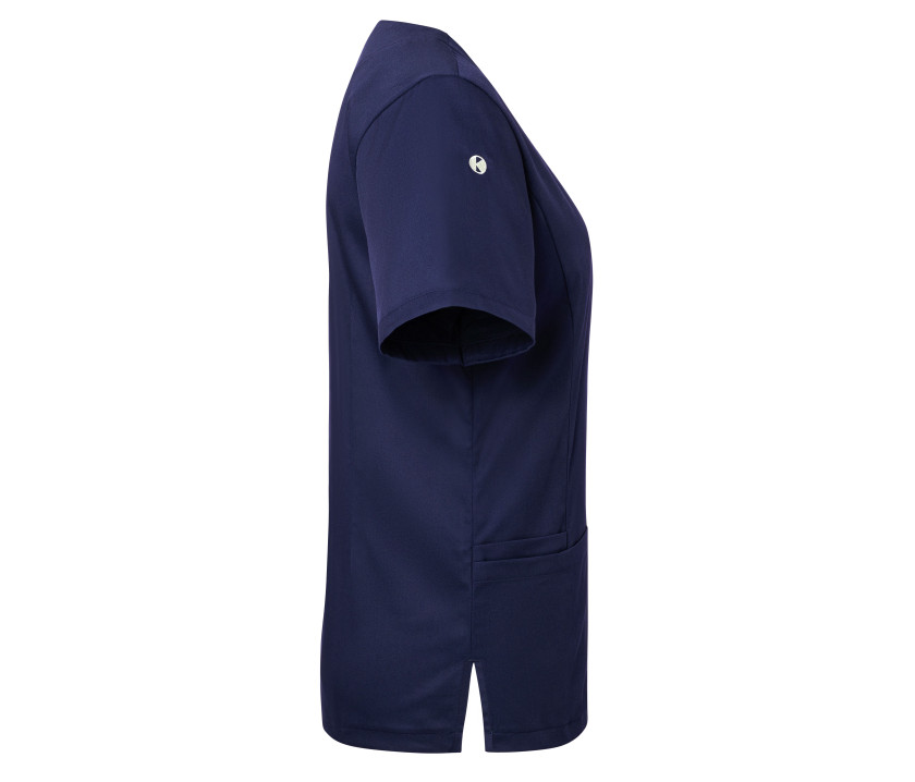 Col V. Convient notamment aux secteurs de la santé et de la beauté. Lavable à 95°. Coupe légèrement ajustée. 2 poches sur les côtés et 1 poche cachée côté droit. Poche poitrine.