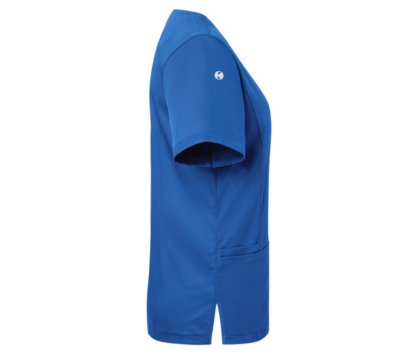Col V. Convient notamment aux secteurs de la santé et de la beauté. Lavable à 95°. Coupe légèrement ajustée. 2 poches sur les côtés et 1 poche cachée côté droit. Poche poitrine.