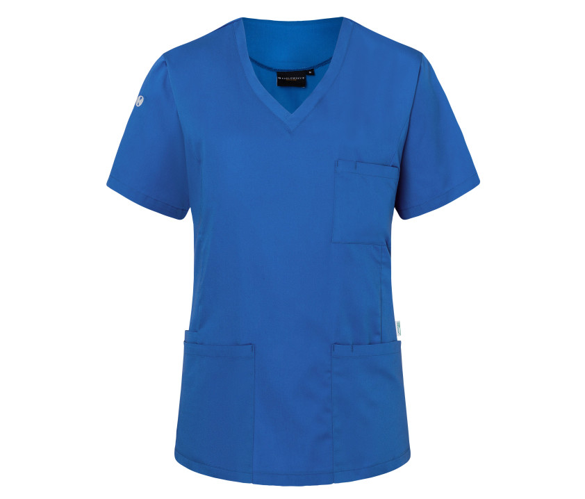 - Col V. Convient notamment aux secteurs de la santé et de la beauté. Coupe légèrement ajustée.