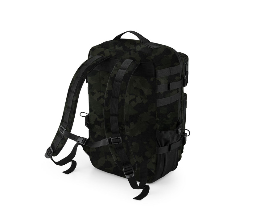 Anneaux en tissu Molle. Grand compartiment principal. Compartiment matelassé pour PC portable, jusqu'à 17". Poche frontale entièrement en Rip-Strip™. 3 grandes poches zippées. Poches filet pour bouteilles. Poches filet intérieur. Dos matelassé. Poignée de transport. Bandes de compressions. Bretelles poitrine ajustables. Compatible avec les empiècements Rip-Strip™ BG840 et BG841; et les empiècements ModulR™ BG241 et BG242. Surface de marquage : 15x10cm.