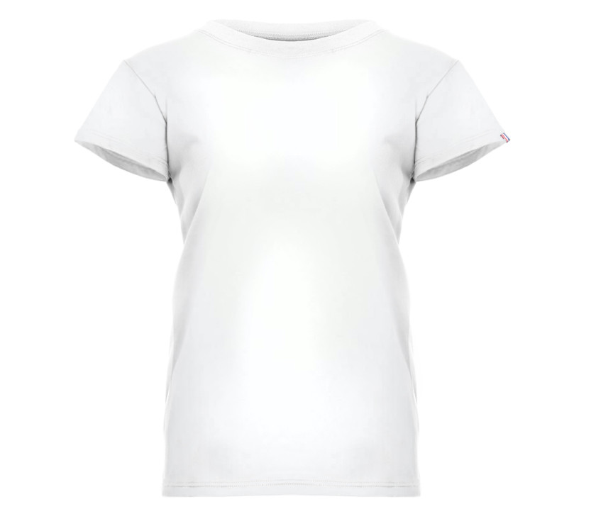 Coupe cintrée. Col rond. Pas d'étiquette de marque, seulement une puce de taille au col. Composition cousue dans la couture intérieure latérale gauche. Coton peigné de belle qualité. Bande de propreté au col. Double surpiqure bas et manches. Drapeau tricolore sur la manche. Origine France garantie.
