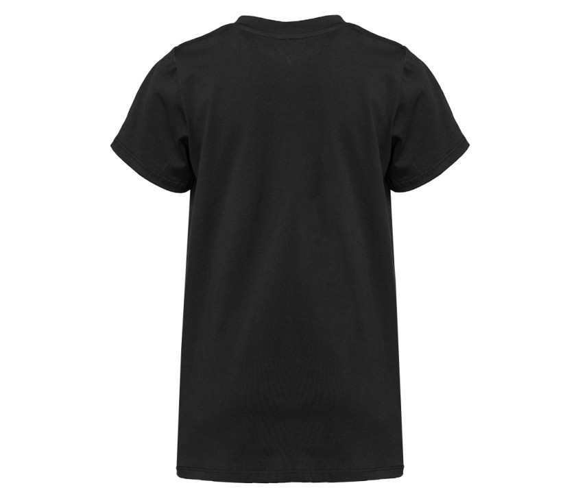 - Coupe cintrée. Col rond. Pas d'étiquette de marque, seulement une puce de taille au col. Bande de propreté au col.