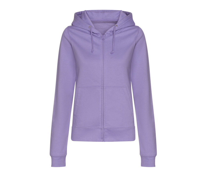 Sweat zippé femme - Fermeture zippée recouverte en plastique YKK. Capuche doublée. Cordon de serrage ton sur ton. Poche kangourou. Intérieur gratté.