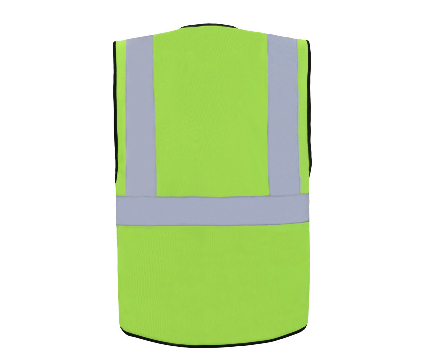 Certifié EN ISO 20471:2013/A1:2016 ; Orange certifié RIS-3279-TOM Iss 2 ; Neon Green & Neon Pink certifé EN 17353:2020 Type AB3; les autres couleurs EN 17353:2020 Type B3. Bande horizontale réfléchissante de 5cm. 2 bandes réfléchissantes de 5cm de large sur les épaules. Fermeture zippée. 2 poches avec rabats et fermeture Velcro. Multifonctionnel : poche pour carte d'identité (9,5cm x 6,5cm), grande poche pour téléphone, porte-stylos. Propriétés réfléchissantes garanties selon la norme EN pour 25 lavages à 40°C.