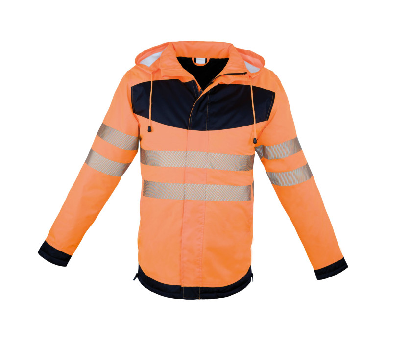 - Certifié EN 343:2019 3:1 imperméable à 8 000 mm. 2 bandes réfléchissantes de 5 cm de large au corps et sur les manches. Accès personnalisation. 2 poches latérales. Protection solaire UPF 40+. Grande zone d'impression. Protège de la pluie avec une capuche amovible, imperméable jusqu'à 8000mm. Certifié EN ISO 20471:2013/A1:2016, classe 3.