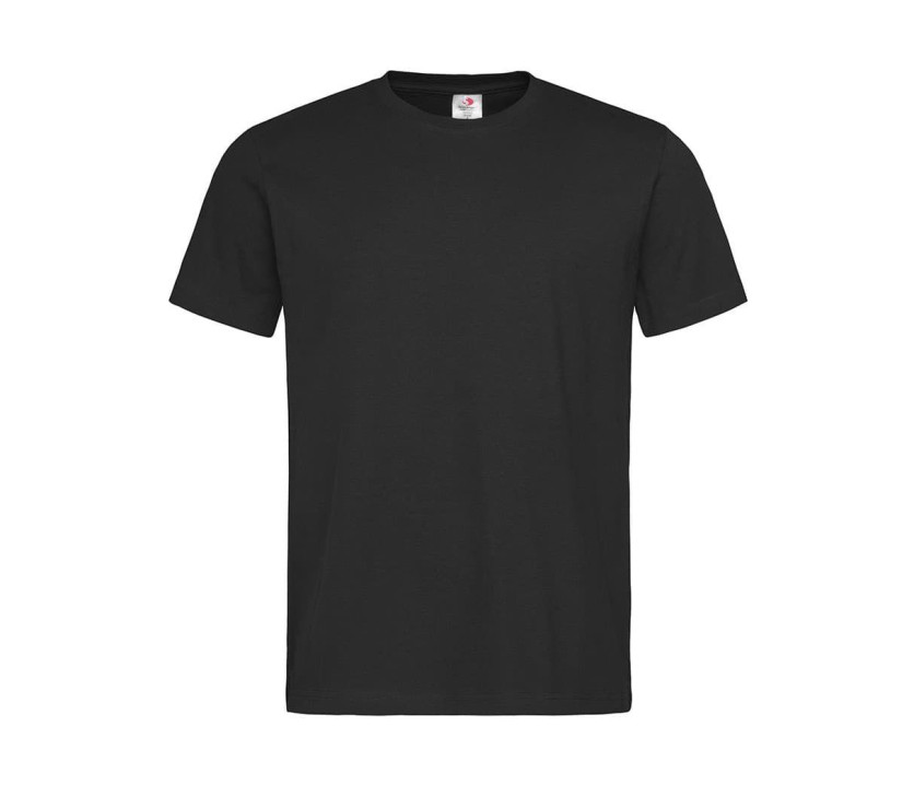 Tee-shirt col rond homme - Coupe tubulaire. Bandes de propreté aux épaules. Étiquette de taille et d'entretien au col.
