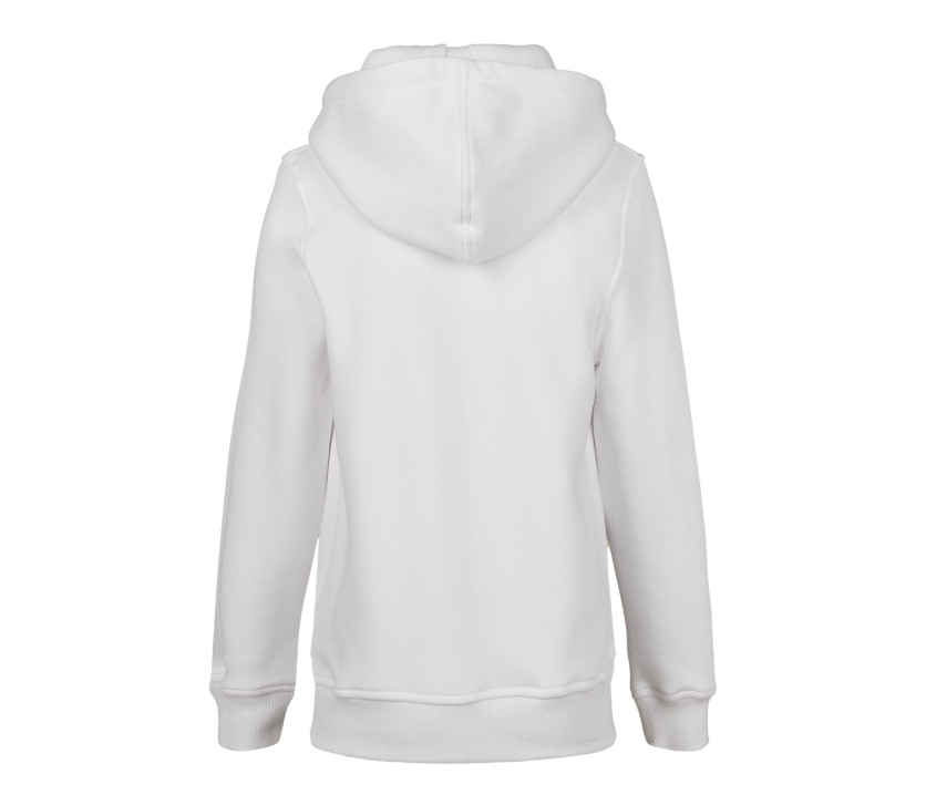 Puce de taille au col. Bande de propreté au col. Bord côte aux manches et à la taille. Poche kangourou. Capuche sans cordon. Manches droites.
