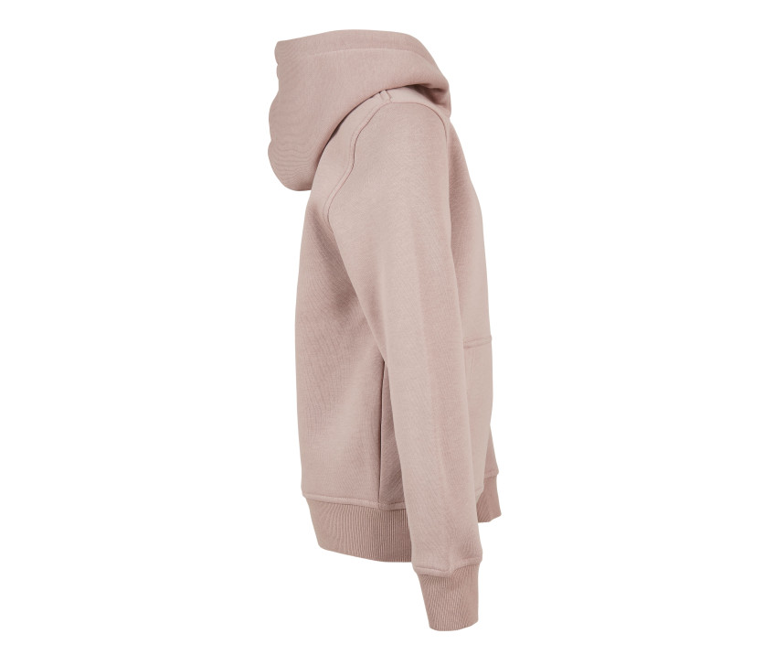 Puce de taille au col. Bande de propreté au col. Bord côte aux manches et à la taille. Poche kangourou. Capuche sans cordon. Manches droites.