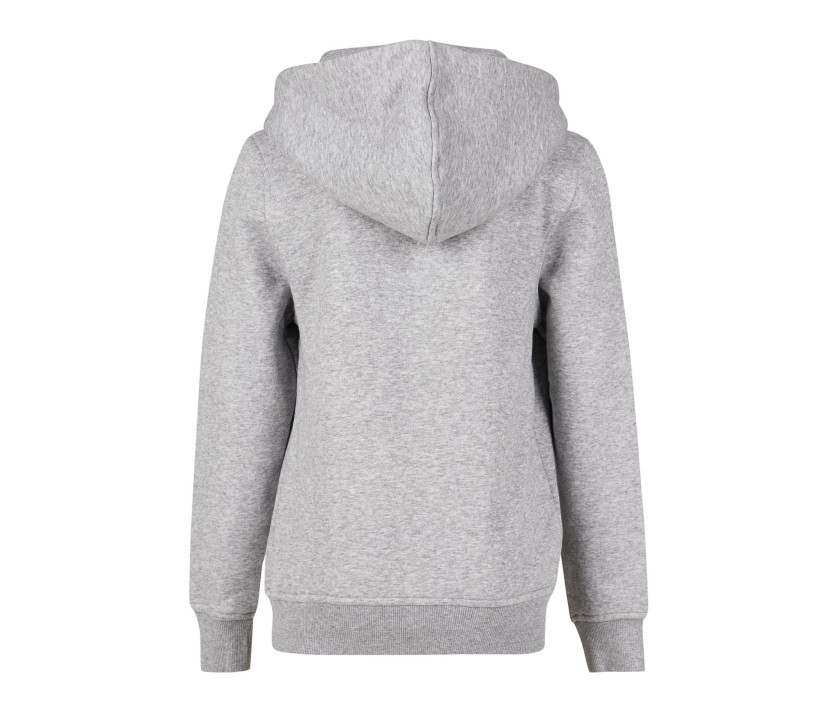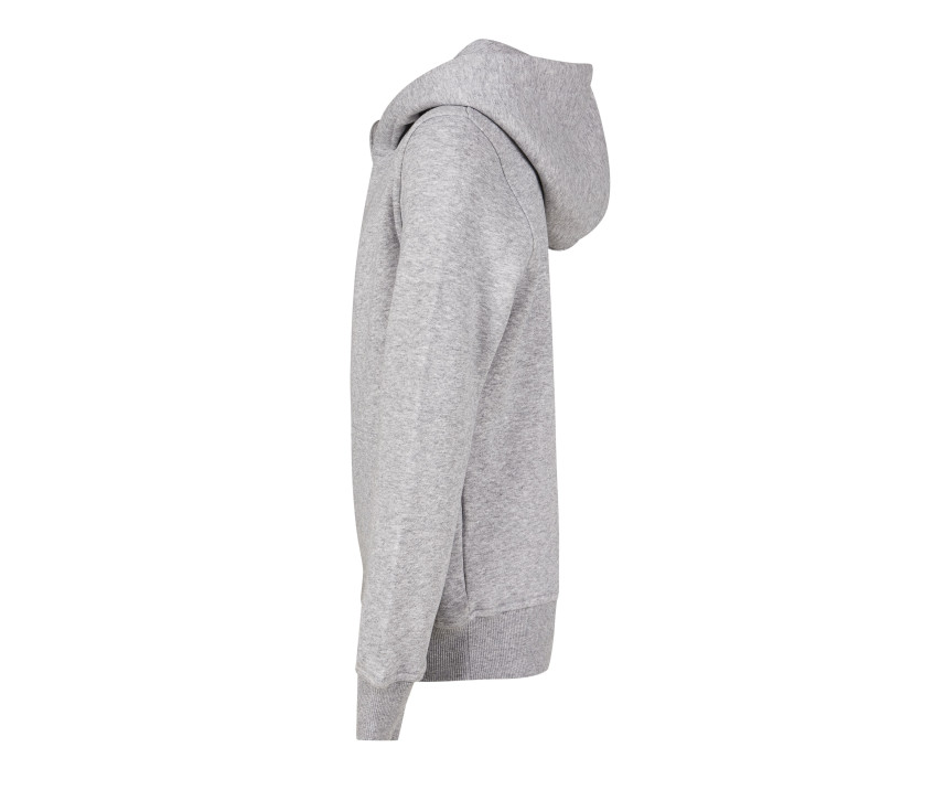Puce de taille au col. Bande de propreté au col. Bord côte aux manches et à la taille. Poche kangourou. Capuche sans cordon. Manches droites.