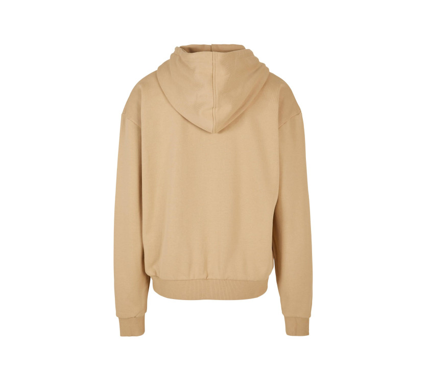 Fermeture grand zip métallique. Bords côte épais aux poignets et à la taille. Capuche classique mais sans cordon. Poches kangourou. Coupe large. Intérieur French Terry.