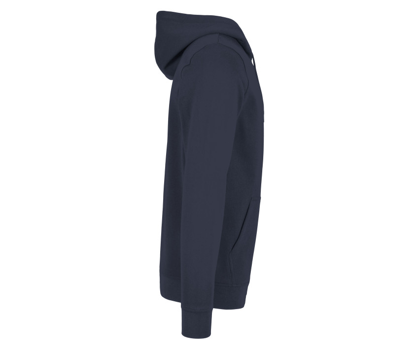 Manches droites. Capuche ajustable par cordons. Poches kangourou. Bord côte épais aux poignets et à la taille. Fermeture grand zip. Intérieur gratté. Puce de taille au col. Coupe classique.