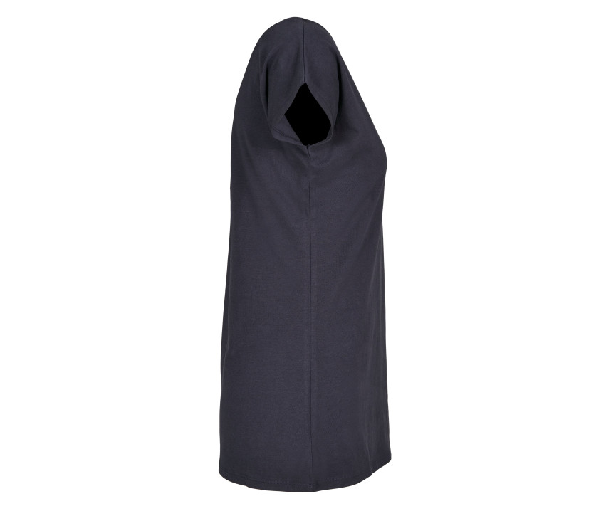 Coupe ample. Large encolure pouvant s'étirer sur une épaule. Bouts de manches retournés.