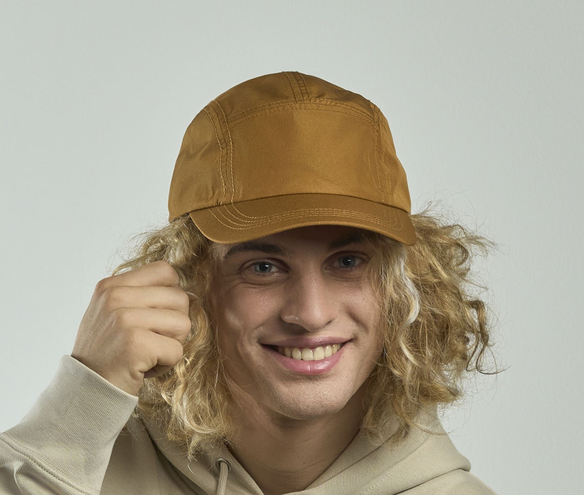 5 panneaux. Matière imperméable avec coutures soudées. Doublure filet mesh à l'intérieur. Visière précourbée. 4 coutures sur la visière. Fermeture par boucle métal. Tour de tête : 58cm. Structure de la visière en plastique.