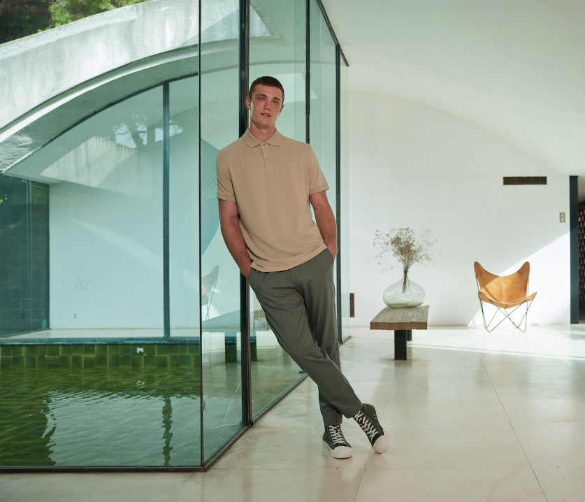 Maille piquée respirante. Plaquette renforcée 2 boutons. Poignets et col en bord côte 1x1. Boutons ton sur ton. Coutures aux épaules et bande de propreté au col.