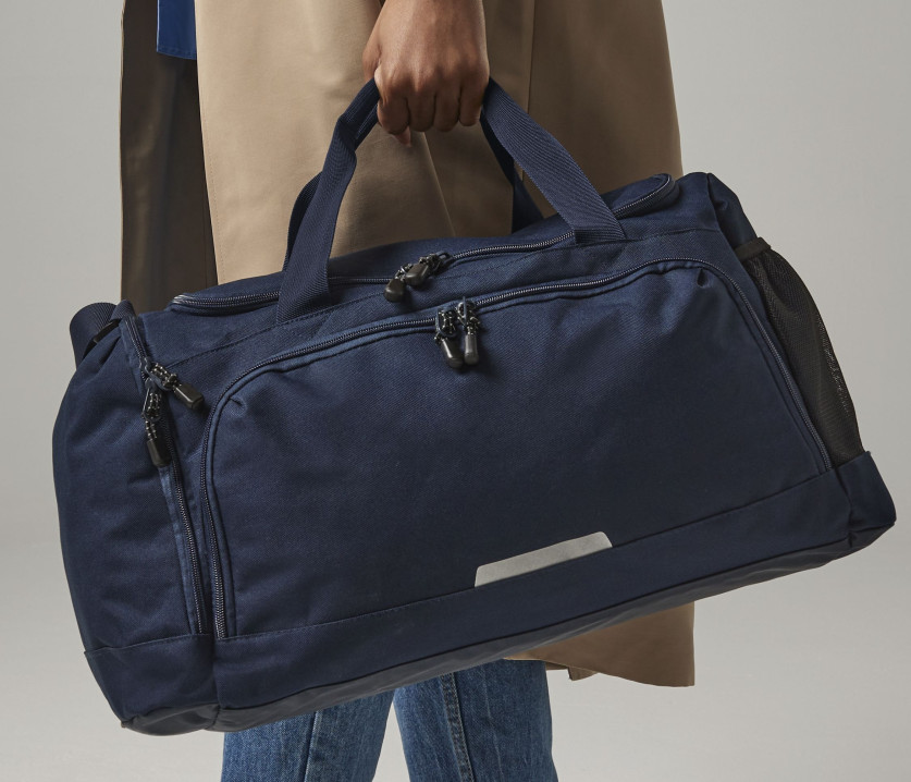 Parties réfléchissantes à visibilité renforcée. Poche frontale zippée. Poche latérale en maille filet. Poche latérale zippée. Étiquette d'identification interne. Fond renforcé pour une répartition optimale du poids. Ouverture avec fermeture éclair avec D-Zip pour un accès rapide. Poignées matelassées. Bandoulière ajustable.