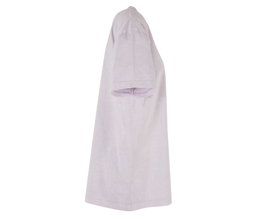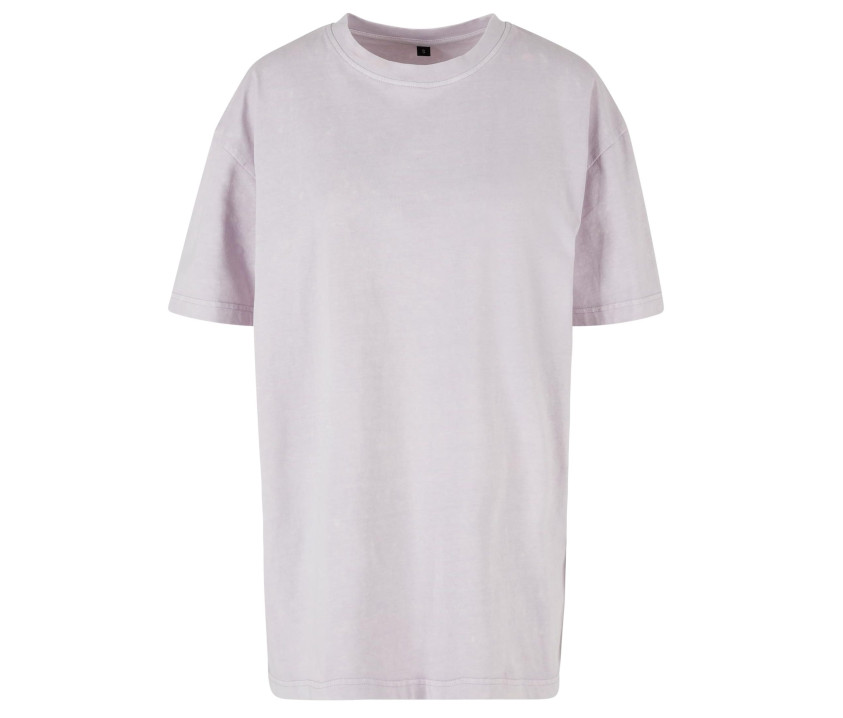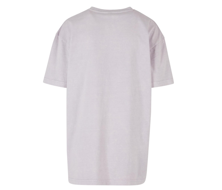 Épaules tombantes. Coupe ample. Tee-shirt décoloré à l'acide. Sans étiquette de marque, uniquement une puce de taille.