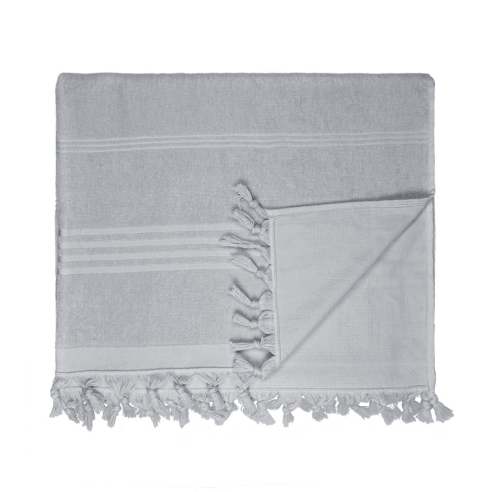 1 côté éponge. Lavable jusqu'à 30°. Franges sur les côtés. Matière légère. Séchage rapide.