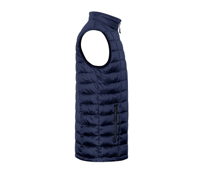 Poche intérieur et 2 poches zippées sur les côtés. Col montant. Taille ajustable.