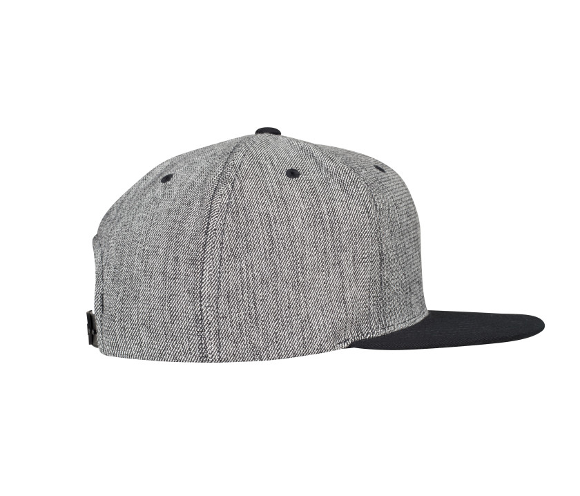 6 panneaux. Visière plate entrièrement noire. Œillets surpiqués noirs. Fermeture par patte.