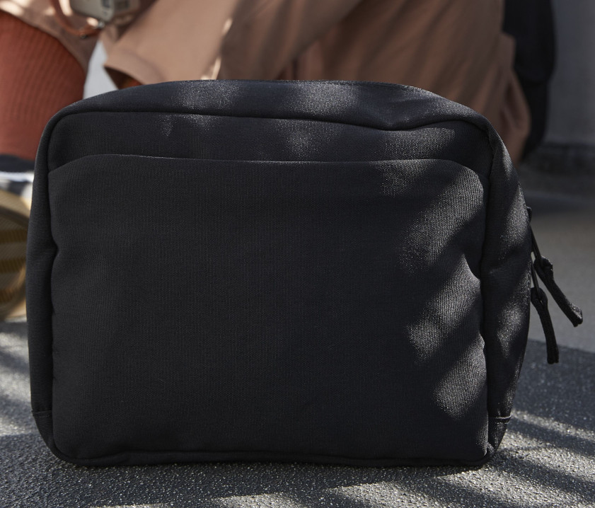Déperlant. Poche frontale zippée. Poche intérieure zippée. Deux poches intérieures zippées. Poches intérieures en filet. Tirettes de fermeture éclair en PU, colorées. Étiquette TearAway pour faciliter le changement de marque. Dimensions : 26x20x8cm. 4 litres.